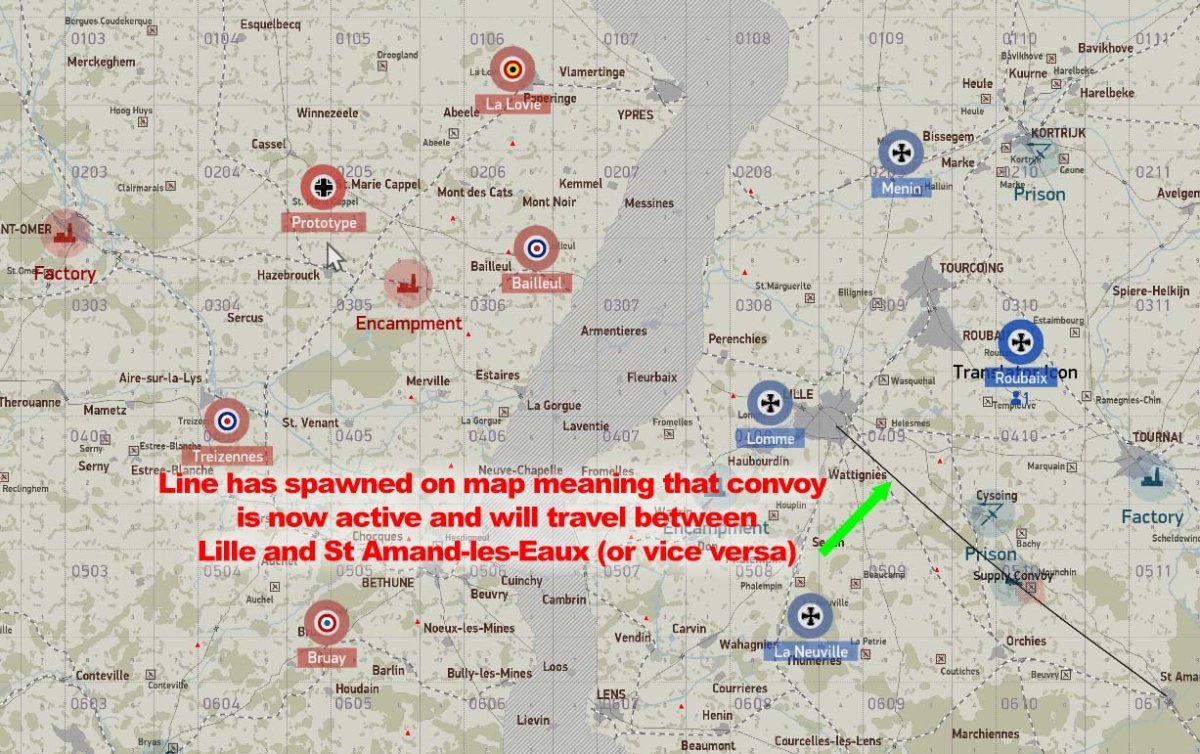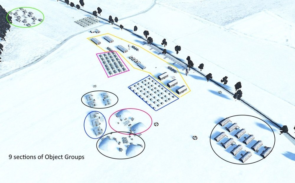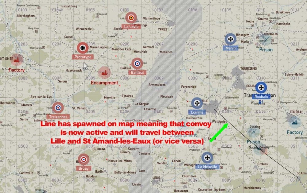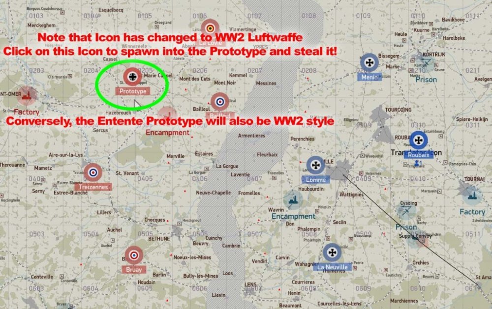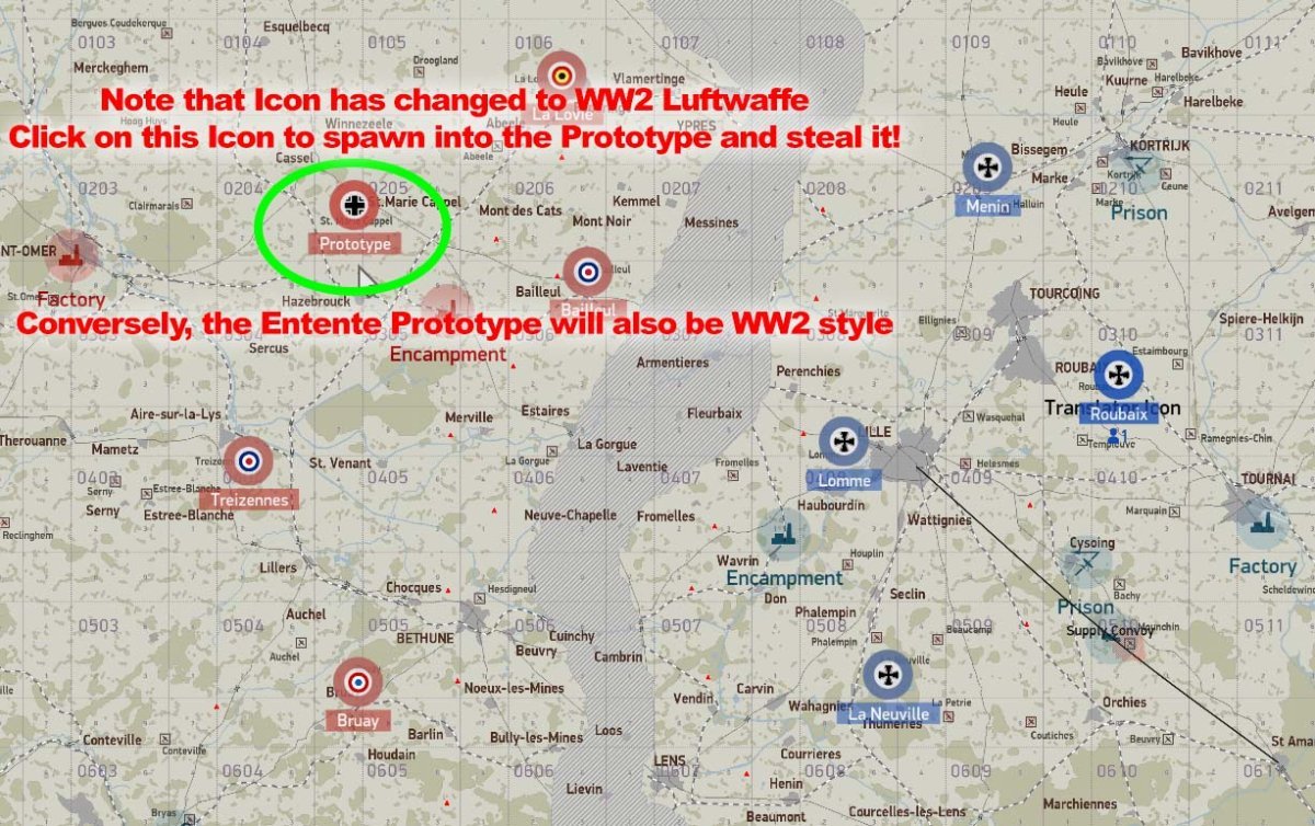 W.I.P Factory: The Area target is organized randomly into 9 Sections of mission editor "object group's". Destroy 50% of a group, destroys that group. Destroy 50% of the "Group's" with-in a section, destroys that "Section". (indicated by a medium smoke) Each Section is 12% of the total. Counted at 25% intervals for points, and seen on the in-game map. ( Sections can contain, power bags and/or ammo crate's, explosive destruction power) A few "objects" may not be part of any Section. Section are the same for Red and Blue, but their arrangement are different. Prototype: Land the mission aircraft at the mission objective airfield marked "Steal Prototype", to activate the prototype spawn. The airfield is protected by several machine guns. It is important to have destroyed (or at least suppressed) these guns. Keep in mind that, if only suppressed, the gunners will re man their guns after a short period and will likely damage / destroy the Prototype or pilot as soon as it is spawned. There will NOT be a text message saying when it is ready to be spawned. You have to check the map to see when the airfield icon has changed. "Steal" (spawn into) the prototype aircraft and return it to your indicated "Land Prototype" airfield. It MUST be returned to that airfield. Land, taxi near the hangers, (engine off not required). Again, there will be no text message. You must "End mission" for the objective points to be counted. The points for each side are noted in the upper right corner of the map. This mission is worth 4 points. Convoy: A convoy is made up of 8 cargo trucks and 2 AAA vehicles. Destroy 5 of the 8 cargo trucks for the points.------ Active Supply columns are indicated on the map by an "as the crow flies" black line, designating its start and end points only. Supply columns are "on-road" , but choose their own roads to their destination. The convoy's start and destination points could change from week to week. The time it spawns is random and could be at any time within the mission. Trains: Trains have random starts and routes, and are not indicated on the map. Encampment: The Area target is organized randomly into 9 Sections of mission editor "object group's". Destroy 50% of a group, destroys that group. Destroy 50% of the "Group's" with-in a section, destroys that "Section". (indicated by a medium smoke) Each Section is 12% of the total. Counted at 25% intervals for points, and seen on the in-game map. (Certain Sections will destroy easier than others, dependent on their make up. IE ammo crates, power bags) Note: Hospital tents (Red cross's) have no value towards the objective. Sections are the same for Red and blue, but their arrangement are different. Spy Rescue: When you enter into the Icon'd area, the Spy will fire off a series of green flares alerting you to his presence. He will then drive to a near-by airfield to wait extraction by the mission aircraft. The enemy has deployed 2 squads of 5 infantry to eliminate the spy. If not destroyed before landing, there is a significant possibility of them damaging the Rescue plane and / or pilot. Land, retrieve the spy, (two sequential messages on-screen). Fly back to your home base. Upon landing at your home base, and taxi near the hangers and come to a stop (engine off not required). After a few moments you should get a message indicating the Spy has been retrieved. Prison Rescue: To break the prisoner from the prison, you need to bomb the Headquarters building, the barrier and its gatehouse. When this is completed, the truck will drive out and head to a near-by airfield. You must land at this airfield, wait for the on-screen message that the prisoner has been picked up, (two sequential messages) then fly back to your home base. Upon landing at your home base, and taxiing near the Hangers. (engine off not required) after a few moments you should get a message indicating "The prisoner has been rescued". Balloons: Are not point objectives, but destruction will reduce the area's Flak by 30%,. Pending a "clear" airspace, of approx 12km, after the balloons destruction.- 1 reply